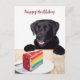 Envoyez un message doux avec cette carte postale de Lab noir et de gâteau arc-en-ciel !