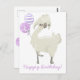 NouvelleAlléeParc - Jolie carte d'anniversaire pour enfants, représentant un lama heureux et dansant avec des ballons roses, violets et lavande en aquarelle. Ajoutez simplement le nom de votre enfant après "Joyeux anniversaire" pour une conception personnalisée, et ajoutez un message personnel au verso.
