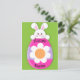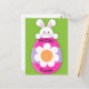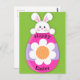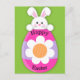 Une petite carte postale très sucrée de lapin de Pâques, avec un lapin mignon juché sur un oeuf géant de Pâques rose, avec le texte (peut être customisé en costume) 'Happy Easter' sur l'oeuf.