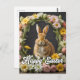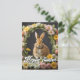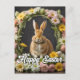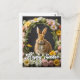Cette carte postale présente un lapin lapin lapin absolument adorable posé dans un cadre fleuri de Pâques.