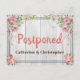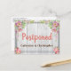 Cette jolie carte postale boho rustique Mariage Postponed dispose d'un arrière - plan en bois de grange gris clair et d'un script tendance dans une couleur corail. Cette carte postale New Date Mariage est décorée d'un bouquet de fleurs couleur rose rose et rousse, vert et feuillage avec de jolies vignes. Customisez la police et la couleur du texte à votre goût et remplissez votre adresse de retour au verso.
