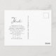 Simple et joli mariage noir et blanc merci carte postale avec belle lettre "merci" en blanc script et photo complète sur le devant, et un doux message de remerciement et adresse de retour sur le dos de la carte.