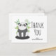 Carte de remerciement de fête avec une illustration d'un ours panda noir et blanc assis dans du bambou aquarelle vert. Une petite bulle de dialogue avec un cœur à l'intérieur. Joli panda exprimant son amour.