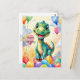 Carte Postale Joli petit dinosaure avec beaucoup de ballons colo