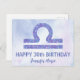 Cette jolie carte d'anniversaire personnalisée violette et lavande pour la Balance présente votre signe astrologique du zodiaque dans un beau scintillement comme les constellations. Personnalisez ce design mignon avec votre nom en écriture cursive pour quelqu'un avec un anniversaire fin septembre ou début octobre.