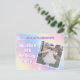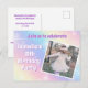 Célébrez l'anniversaire de votre petite fille avec ces jolies invitations de carte postale arc-en-ciel pastel qui présentent de belles lettres violettes et la photo personnalisée de votre enfant. Cette invitation magique illustre l'enchantement de l'enfance. Ajoutez la photo de votre enfant pour une touche personnelle sur cette invitation fantaisiste et mignonne.