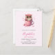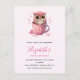 Carton d'invitation à une fête d'anniversaire avec une image adorable d'une chouette assise dans une tasse à café.