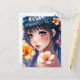 Carte Postale Jolie fille Anime avec jonquilles | Rester en cont