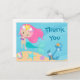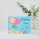 Jolies cartes de remerciement personnalisées de sirène avec une adorable fille aux cheveux roses avec une queue sarcelle cool nageant à côté de magnifiques coquillages dans l'océan. Cartes de remerciement d'anniversaire d'été cool.