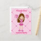 Cette jolie carte de remerciement personnalisée de meneuse de claque présente un dessin d'une jolie brunette en uniforme de meneuse tenant des pompons roses. Cartes de remerciement pour l'anniversaire des enfants avec un motif de cœur amusant.