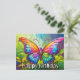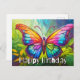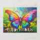 Cette carte postale unique présente une illustration d'un papillon coloré flottant. Cette carte d'anniversaire serait vraiment merveilleuse pour les amis, la famille et les collègues de travail.