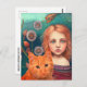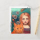 CARTE POSTALE JOLIE PETITE FILLE & GINGER CAT POSTCARD