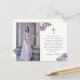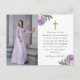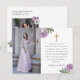 Jolie carte postale de remerciement de confirmation classique florale violette et croix comporte des fleurs de style vintage et une simple croix dorée avec deux photos personnalisées. Le dos comprend la deuxième photo embellie de fleurs violettes supplémentaires et votre adresse de retour. Remerciez vos invités au sacrement de confirmation catholique avec cette carte attentionnée.