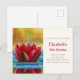 Invitation d'anniversaire avec une photographie d'un étang avec une belle fleur de lotus rouge qui dépasse sur le dessus.