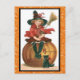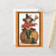 Carte Postale Jolie sorcière assise sur un Citrouille avec chat