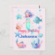 Jolis animaux marins aquarelle et carte joyeux anniversaire thème sirène. Message et nom personnalisables.