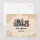 Carte Postale Jouets en bois avec train, voilier et ours en pelu