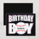 Une carte postale d'anniversaire amusante sur le thème du baseball pour les joueurs et les fans de baseball. Avec un design unique de GARÇON D'ANNIVERSAIRE avec un baseball au milieu et une zone de texte personnalisable où vous pouvez saisir le nom de votre joueur de baseball. Peut être utilisé comme invitation pour des fêtes d'anniversaire sur le thème du baseball ou comme carte d'anniversaire pour les amateurs de baseball. Cliquez simplement pour personnaliser le modèle et le personnaliser avec votre propre nom !