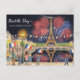 Carte de vœux patriotique BASTILLE DAY, avec le contour de la carte combiné au drapeau TRICOLORE de la FRANCE. Sur le côté droit figure la devise française - Liberté, Égalité, Fraternité et en dessous se lit Joyeux Quatorze Juillet