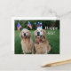 Joyeux 4 juillet, États-Unis ! Montrez votre esprit patriotique avec cette jolie carte postale de golden retriever ! La conception présente une photographie de deux chiens célébrant la fête de l'Indépendance avec des drapeaux rouges, blancs et bleus, un nœud papillon et des bandeaux. Le texte est entièrement personnalisable.