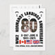 Carte postale commémorative du DÉBARQUEMENT DE NORMANDIE D-JOUR WW2 80e Anniversaire avec TEXTE PERSONNALISABLE pour commémorer le 80e anniversaire du débarquement de Normandie le 6 juin 1944. Le design présente une typographie audacieuse dans un cadre fenêtré. Le chiffre 80 est représenté par une scène de débarquement du Jour J en masque. Le design comprend également les drapeaux du Canada, des États-Unis et de la Grande-Bretagne. En bas, il y a un espace pour un TEXTE PERSONNALISABLE où vous pouvez PERSONNALISER cette carte postale commémorative avec le(s) nom(s) de proches disparus ou d'un régiment particulier ou d'un événement spécial, tel que l'Opération Overlord, l'Opération Neptune, la plage de l'Utah, etc. Vous pouvez également personnaliser votre