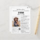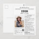 Dites joyeux anniversaire avec cette carte d'anniversaire unique au style journalistique, comprenant une photo du destinataire et une collection de faits amusants et d'actualités mondiales de 1998. Soyez créatif et créez un souvenir personnalisé. Conçu pour ressembler à un journal vintage dans un style noir et blanc classique. Une façon mignonne et amusante de célébrer les années 90 !