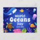 La Journée mondiale des océans rappelle à tous le rôle majeur que jouent nos océans dans la vie quotidienne. Ce sont les poumons de notre planète, une source majeure de nourriture et de médicaments, et une partie essentielle de notre biosphère. L’objectif de la Journée mondiale des océans est d’informer le monde de l’impact des actions humaines sur l’océan, de développer un mouvement mondial de citoyens pour l’océan, et de mobiliser et d’unir la population mondiale sur un projet de gestion durable des océans. Ce design coloré montre une scène sous-marine avec une baleine, une tortue, un assortiment de poissons, méduses et coraux. Le texte "8 juin 2023" peut être modifié.