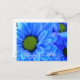 Bonne carte postale d'anniversaire avec photo de marguerite bleue. Vous pouvez facilement modifier la couleur, la police, la taille et la position du texte en cliquant sur le bouton personnaliser.
