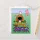 La carte postale de Pâques dit "Joyeux Pâques... ou ce qui en reste". Doté d'un vilain Dachshund aux oreilles de lapin, assis dans un panier de pâques entouré de son lapin de pâques au chocolat et de ses oeufs de pâques. Le lapin de Pâques, moins ses oreilles et sa queue, fuit pour sa vie.