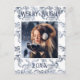 Joyeuse typographie. Brocade bleu marine design vintage avec votre photo préférée au centre. Personnalisez avec votre message et votre nom à l'envers. La carte de voeux de vacances parfaite.