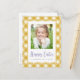 Cette mignonne carte postale de Pâques comporte un motif à chevalet jaune avec une photo et Happy Pâques dans un magnifique script. Le dos de la carte postale comprend un message pour personnaliser et aquarelle les fleurs de printemps.