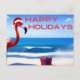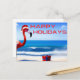 Joyeux Flamant rose rose de vacances sur la carte postale de la plage.