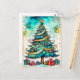 Cette carte postale vraiment festive présente une illustration colorée de l'arbre de Noël dans la forêt. N'hésitez pas à ajuster toutes les options disponibles comme vous le souhaitez. Joyeux Noël, Tous.