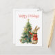 Carte Postale Joyeuses Fêtes - Lapin Mignon avec un Arbre de Noë