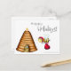 Carte postale de jour férié personnalisée avec l'illustration d'une abeille Santa Claus avec son sac de cadeaux allant à sa ruche. Illustré et dessiné par Patricia Alvarez.