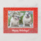 Carte postale moderne personnalisée avec votre photo préférée de vos animaux de compagnie ou de votre famille, sur un arrière - plan de parties scintillant rouge. Vous pouvez facilement personnaliser avec une photo de vos chiens, chats et/ou famille, customiser l'accueil avant, et personnaliser le message intérieur et la signature.