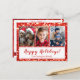 Carte postale simple "Happy Holidays" rouge .parties scintillant script. Ajoutez vos photos pour personnaliser et faire de ce jour férié votre propre salut.