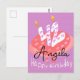 Très jolie carte du Lapin toujours pressé d'Alice . Belle qualité de l'impression en rose pastel.