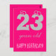 C'est une carte postale d'anniversaire rose chaud mignonne avec le texte JOYEUX ANNIVERSAIRE pour quelqu'un qui a 23 ans.