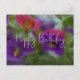 Carte Postale Joyeux anniversaire Abstrait violet et fleurs rose