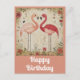 Souhaitez un joyeux anniversaire à quelqu'un avec cette carte postale mignonne avec un design floral aquarelle et flamant rose !