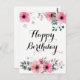 Carte Postale Joyeux Anniversaire Aquarelle Floral Rose