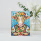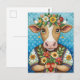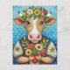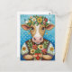 Carte Postale Joyeux anniversaire art folklorique avec vache au