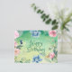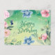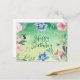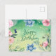 Carte Postale Joyeux Anniversaire Bleu, Fleurs Aquarelle Rose
