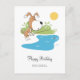 Cette jolie carte postale d'anniversaire joyeuse présente une illustration caricaturale de la pêche amusante du Chiot. Le Little Dog Angler se tient avec la canne à pêche à côté de l'eau en attente pour le poisson. L'illustration est faite dans des couleurs chaudes : brun, vert, jaune et bleu doux. Grande carte à envoyer à n'importe qui, surtout s'il est un amoureux des chiens et un fan de pêche. Vous pouvez facilement personnaliser le texte avec les outils Zazzle.