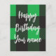 Un design à motif à carreaux verts avec les mots Joyeux Anniversaire Votre nom. Cliquez sur personnaliser et ajoutez un nom.