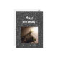 Carte Postale Joyeux Anniversaire. Chat smoking avec une rose.