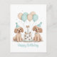 Illustration de dessin animé mignon de chiens Caniches Standards portant un chapeau d'anniversaire entourant un gâteau d'anniversaire et des ballons. Parfait pour les amoureux des animaux ou les parents de chiens.