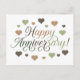 Carte Postale Joyeux Anniversaire Cœurs Verts Marrons Élégance R