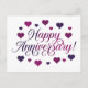 Carte Postale Joyeux Anniversaire Cœurs Violets Romantiques Élég